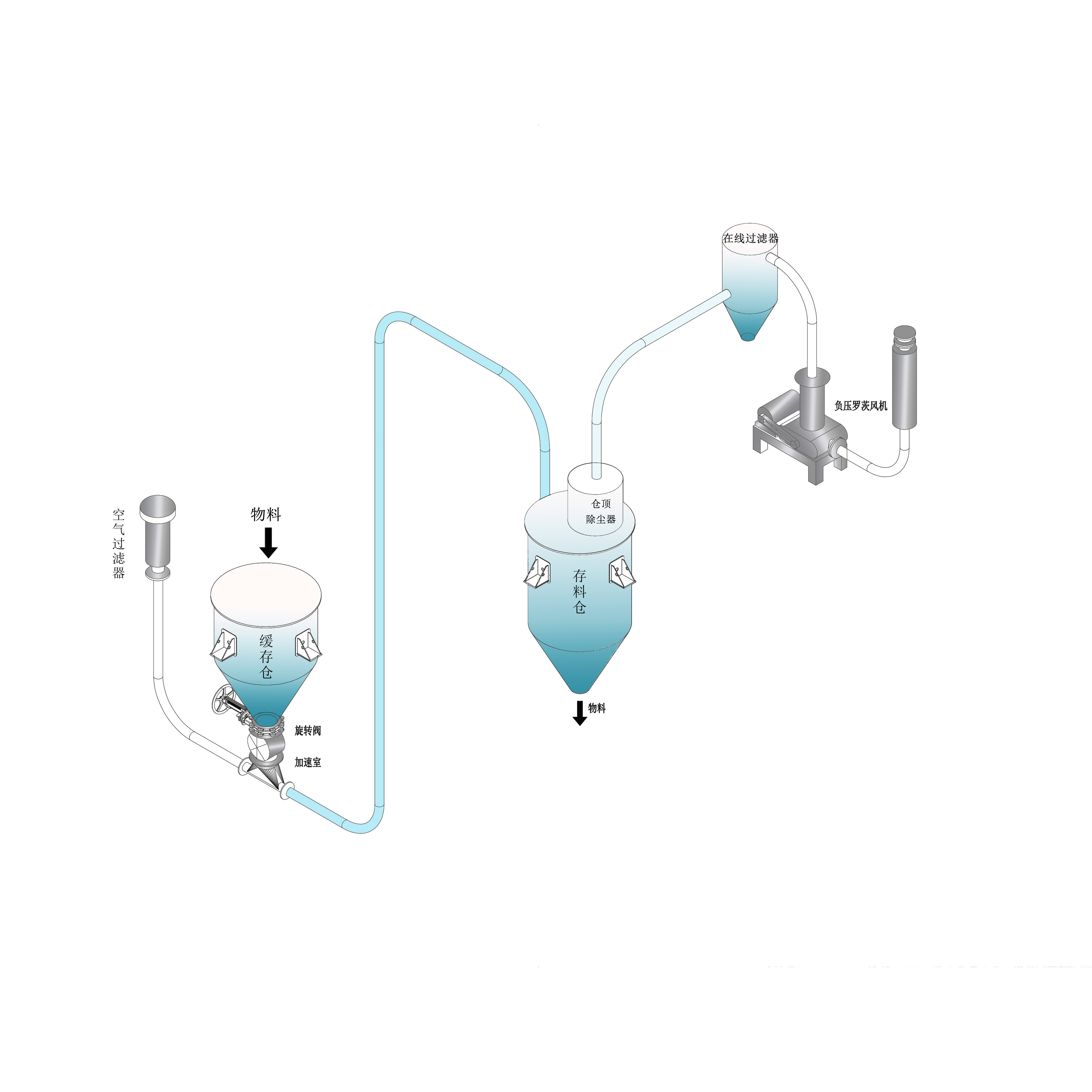 - 由于真空的影响,物料的距离比正压输送的距离短。